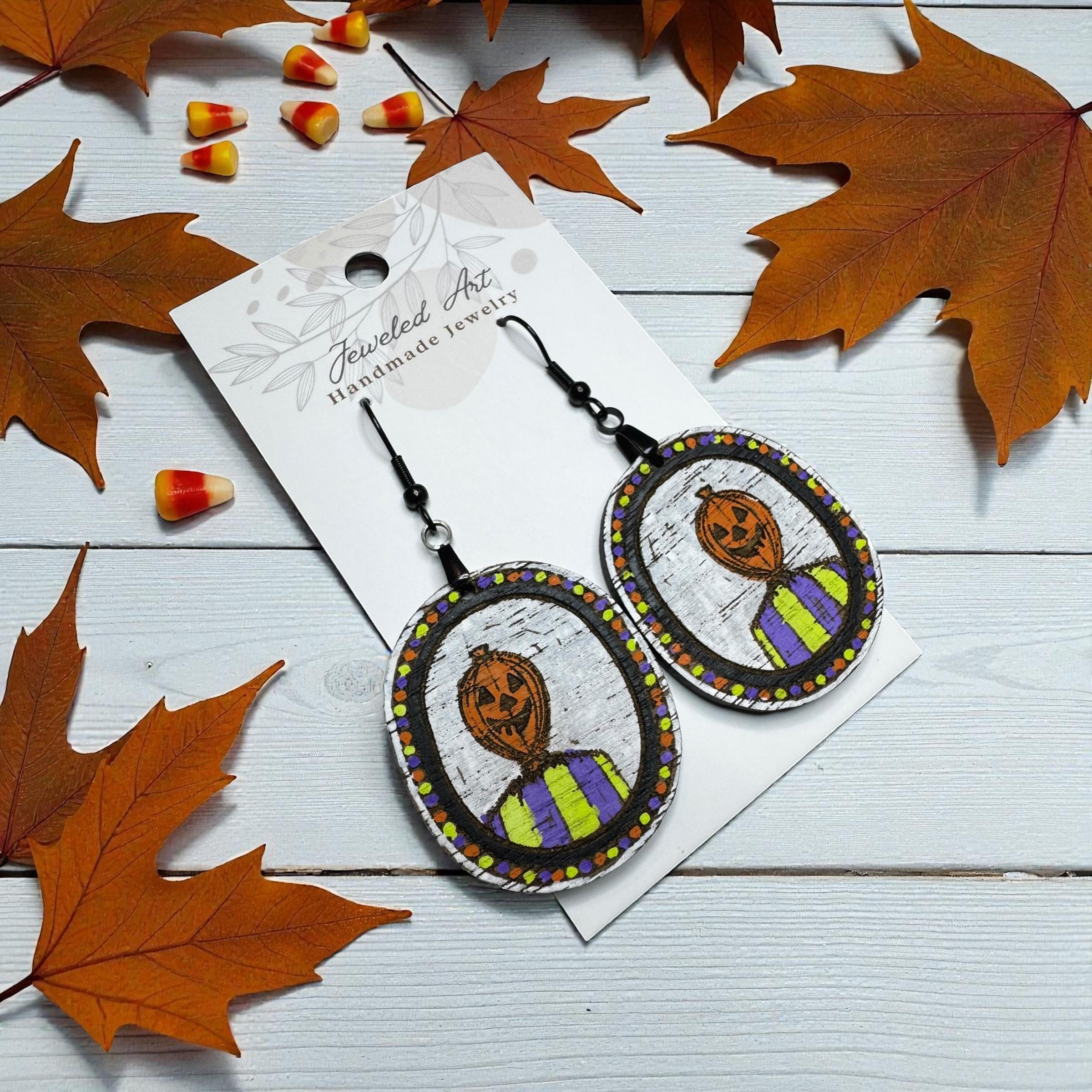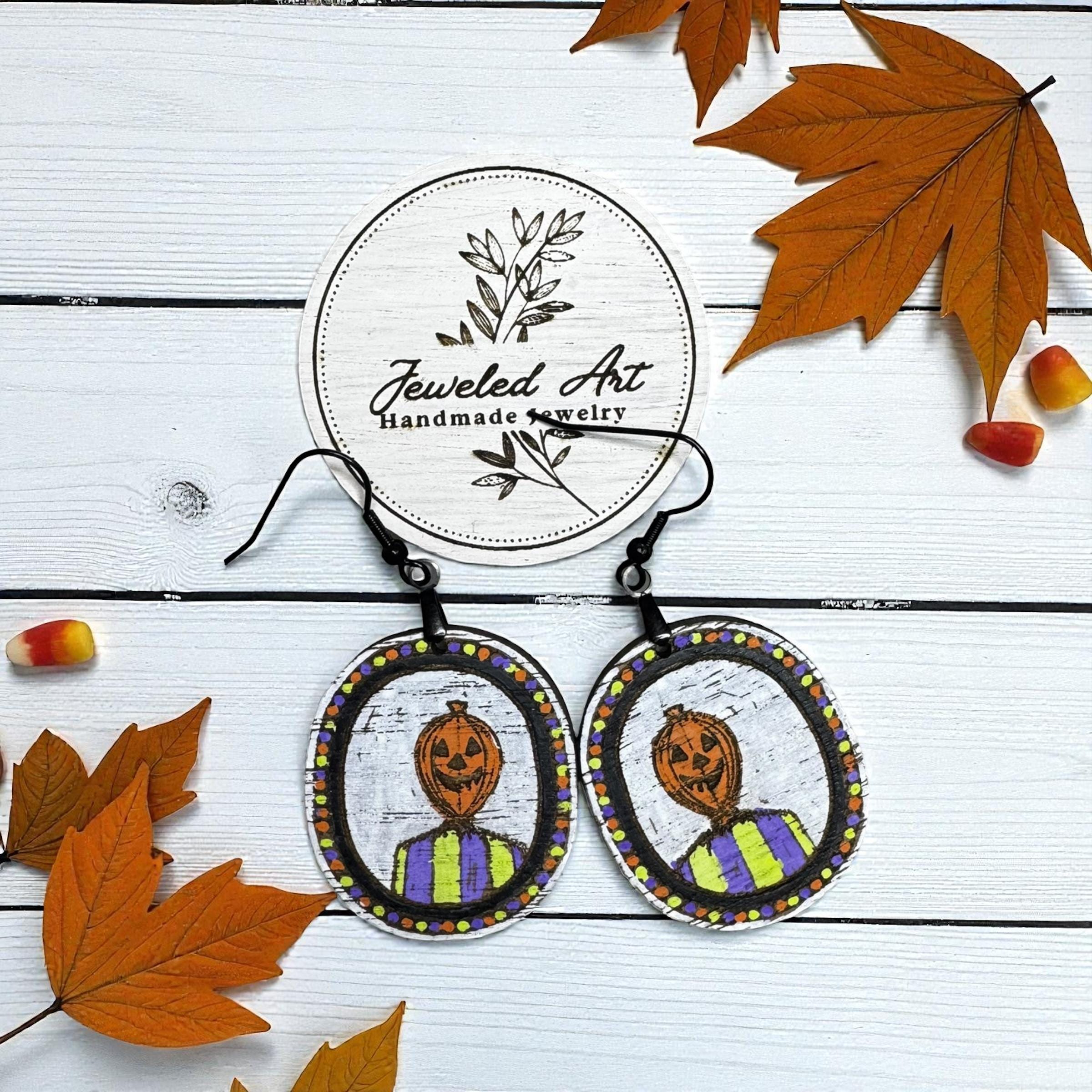🕊️ Celebrate spooky season in vintage style with these hand-painted Pumpkin Head Ghost earrings — a playful blend of Halloween whimsy and nostalgic charm.
